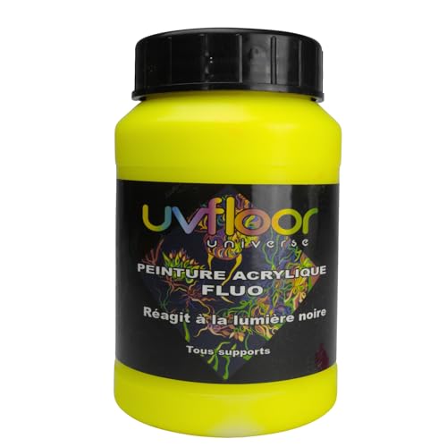 UV FLOOR - Peinture Acrylique Jaune Fluo - Spéciale Lumière Noire Et Ultra Violet - Flashy - Fluide Et Ultra Pigmentée - Fluorescent - 250ml