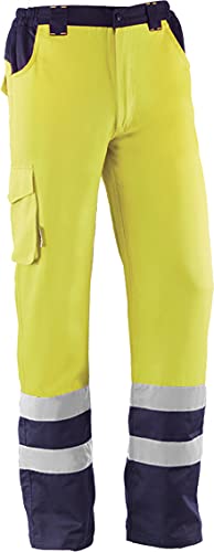JUBA Pantalon Multipoches, 60% Coton, 40% Polyester, 240 g par m², Bandes Réfléchissantes, Jaune Fluo, Bleu Marine - Taille : XL