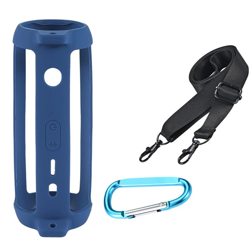 co2CREA Housse en Silicone Compatible Speaker Case pour JBL Flip 5 Enceinte Bluetooth Portable (Comprendre Mousqueton à Crochet +Bandoulière(Flip 5 Silicone Housse, Silicone Bleu)