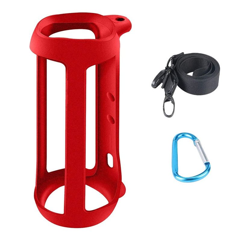 Housse en Silicone Compatible Speaker Case pour JBL Flip 6 Enceinte Bluetooth Portable.Comprendre Mousqueton à Crochet +Bandoulière +Silicone(Haut-Parleur Non Inclus) (Rouge)