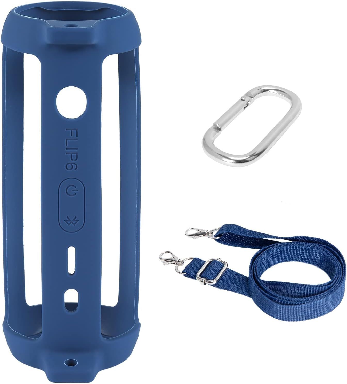 co2CREA Housse en Silicone Compatible Speaker Case pour JBL Flip 6 Enceinte Bluetooth Portable.Comprendre Mousqueton à Crochet +Bandoulière +Silicone(Haut-Parleur Non Inclus) (Bleu)