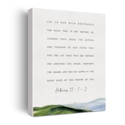 Hebrews 12:1-2 Canvas Print Run with Endurance Inspirational Bible Verse Wall Art for Modern Home Office Decor(Unframed,12x18inch(30x45cm))
