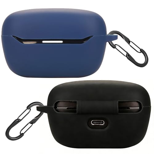 easyBee – Lot de 2 coques compatibles avec casque JBL Endurance Race 2 avec 2 porte-clés, en silicone liquide souple ultra fin – Noir et bleu
