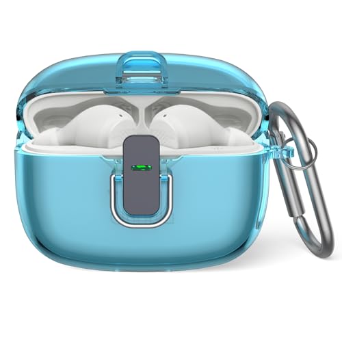 Étui de protection pour JBL Vibe Beam, boîtier de verrouillage de sécurité en TPU transparent MOWYEOK compatible avec les écouteurs JBL Vibe Beam/JBL Wave 200TWS, avec mousqueton (bleu transparent)