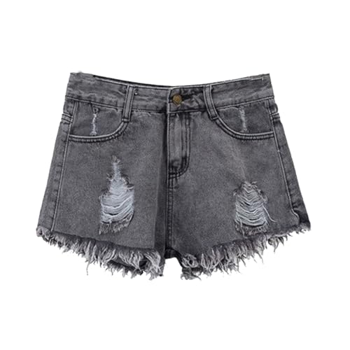 Bermuda Femme,Short en Jean pour Femme Pantalon Cargo Solide Short en Jean Pantalon Court Taille Haute Bermuda Short en Jean Extensible D'Été Vintage Short en Jean Délavé Décontracté avec Poches,Gri