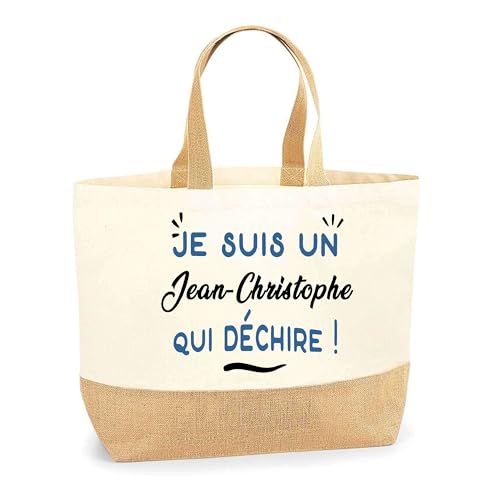 Otshirt Sac Jute d'un Jean-Christophe qui déchire 2- Cabas de Plage Courses et Toile de Jute - Idée Cadeau Femme Personnalisable Anniversaire Fête Original Travail Départ Collègue Retraite Noël.