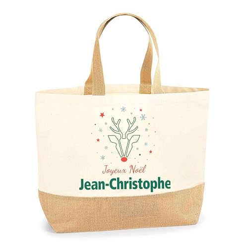Planetee Sac de shopping Joyeux noël Jean-Christophe Cerf - Cabas Voyage - Secret santa Cadeau Noël Humour Insolite Collègue