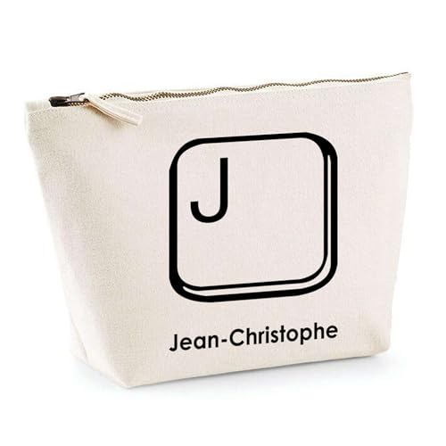 Trousse Jean-Christophe Lettre Clavier | Pochette Toilette Maquillage | Idée Cadeau Prénom Informaticien Geek Gamer Anniversaire Oncle Parrain Beau Papa Collègue Départ Retraite Noël
