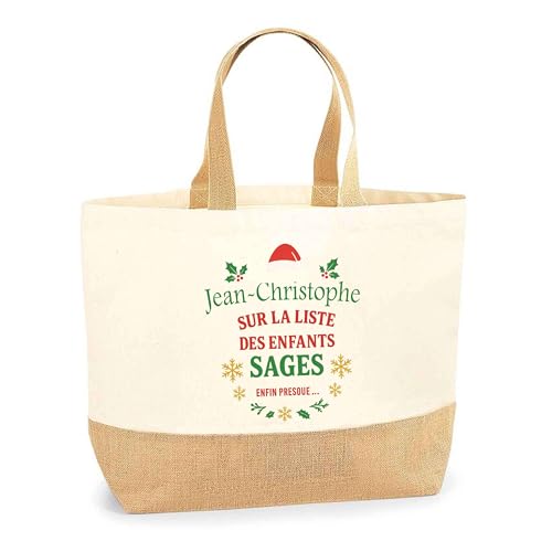 Planetee Cabas jute Jean-Christophe Liste des enfants sages - Sac de course - Secret santa Cadeau Noël Humour Insolite Collègue