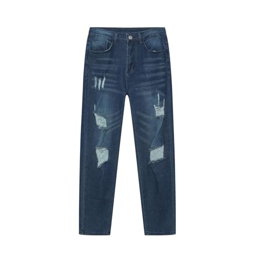 Générique Jean Elastique Homme - Jeans Homme Noir Jean de Jogging décontracté avec Cordon de Serrage Grande Taille déchiré et Vieilli Style Streetwear pour Un Look élégant (Dark Blue M)