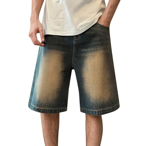 Short en Jean Homme Baggy, Pantalon Court Jean Homme, Bermudas Coupe Ample Taille Elastique Poches Pantalon Court Droit Léger Shorts Et Bermudas Respirant Couleur Unie Plage Jogging