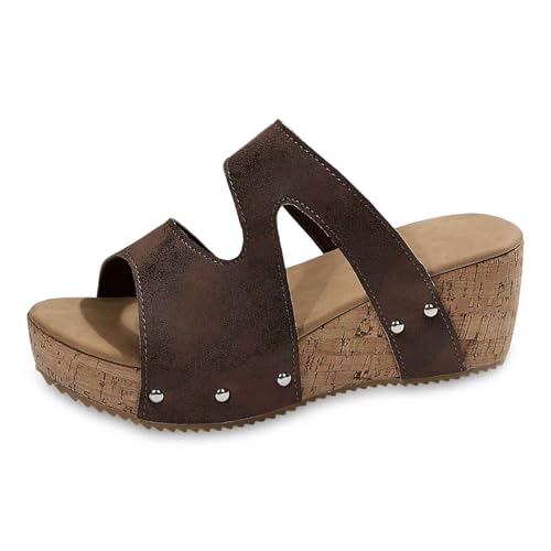 Generisch Sandales élégantes pour femme pour la détente décontractée. Design à bout ouvert. Talon compensé. Sangle réglable. Parfait pour porter avec un jean., marron, 42 EU X-Étroit