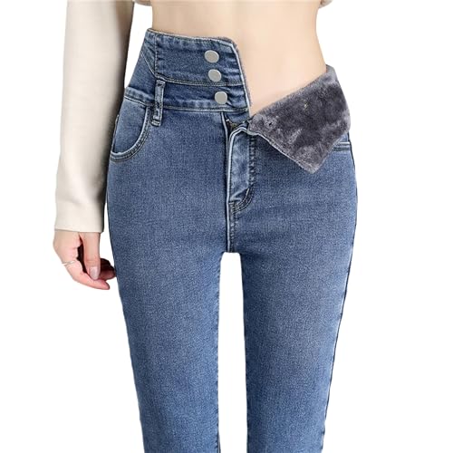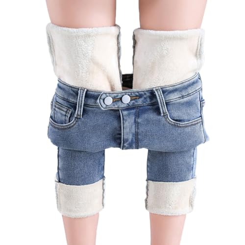 seiveini Jean d'hiver Doublé en Polaire Femme Jeans Polaire Thermique Taille Haute Jeans Leggings Extensible Jeans Chaud Épais Denim Legging Stretch Coupe Ajustée G Bleu Clair 32