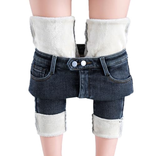 seiveini Jeans Polaire Thermique Femme Doublé Chaud Jean Longue Taille Haute avec Poches Denim Pantalon Hiver Durable Chaud Jeans Leggings en Laine Femme Slim Fit Décontracté G Bleu Foncé 27
