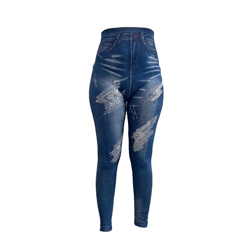JYC CREATIVE 1 legging thermique faux jean pour femme, pantalon thermique, élastique et confortable, avec doublure polaire, legging chaud pour femme, vêtement thermique, bleu, Taille Unique