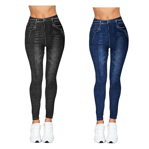JYC CREATIVE thermique leggings en faux jean pour femme, pantalon élastique et confortable, doublure polaire, taille unique