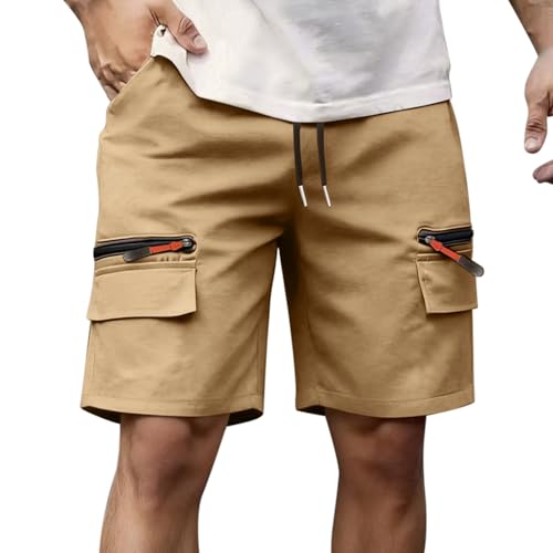 Bermuda Cargo Homme Élastique - Short en Jean Décontracté pour avec Poches Grande Taille (Khaki 36)
