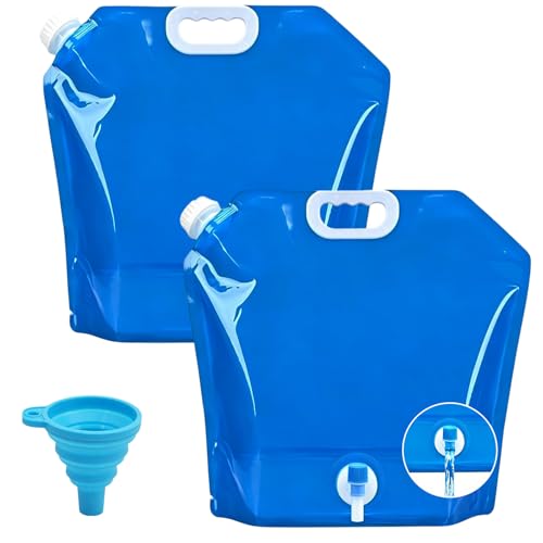JAWAI 2 Pièces 10L Jerrican Eau Bidon d'eau Potable Bidon Pliable Sac d'eau Pliable Bidon d'eau Pliable avec Couvercle Étanche Poche de Stockage d'eau Portable Convient pour Le Camping en Plein Air