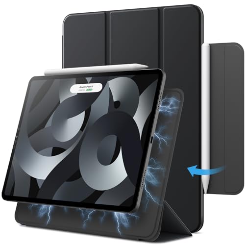 JETech Coque Magnétique pour iPad Pro 11 Pouces (2022/2021/2020/2018 Modèle) et iPad Air 5/4 10,9 Pouces, pour la Charge de Pencil 2, Housse Étui Attachement Magnétique (Noir)