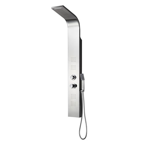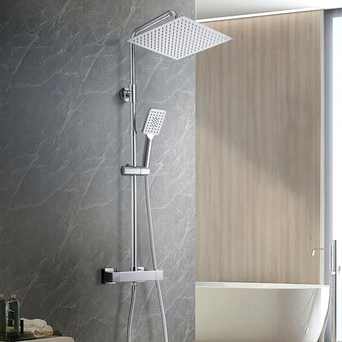 Görbach Colonne Douche INOX avec 38 ° C Mitigeur Thermostatique Colonne Douche avec Robinetterie Salle de Bain Ensemble Douche Mural Baignoire avec Douchette 3 Jets et Tête de Douche 30 * 30cm