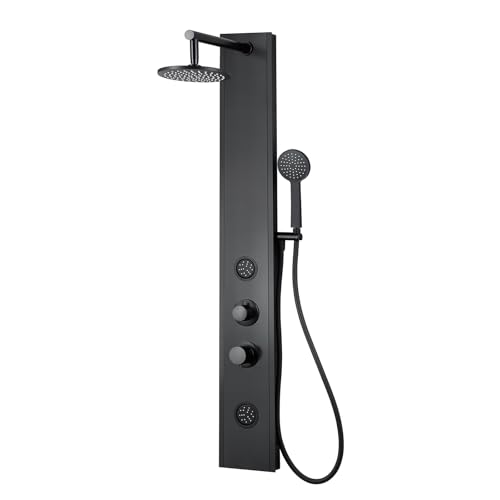 JOHO Colonne Douche Noir sans Robinetterie pour Baignoire Colonne Douche Mural Réglable en Hauteur Système Salle de Bain Set kit de Douche avec Pommeau à Main 3 Jets et Tête de Douche 35 * 25CM