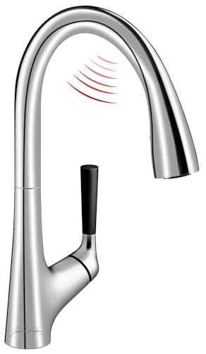 JACOB DELAFON Robinet de cuisine sans contact, douche anticalcaire amovible avec 2 jets et bec rotatif à 360°, économie d'eau, poignée personnalisable (3 couleurs) Couleur chrome Malleco E77748-CP