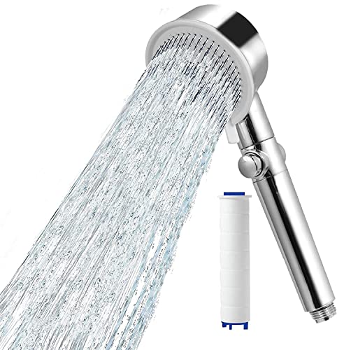 Lemnislife Pommeau de douche avec filtre - Haute pression - 5 types de jets et avec bouton d'arrêt - Chrome