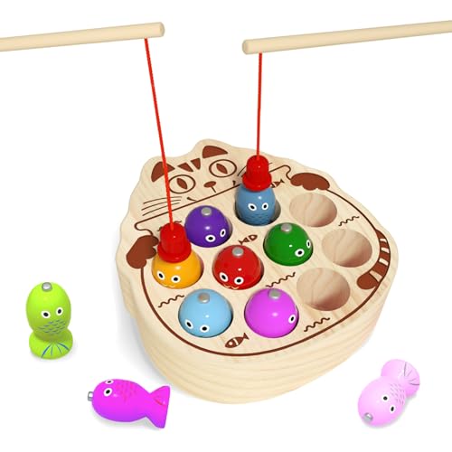 edutree Jeu De Pêche Magnétique en Bois De Enfant 2 3 4 Ans, Jouet Montessori Apprentissage Ouets Educatifs pour Garçons Filles 1 2 3 an
