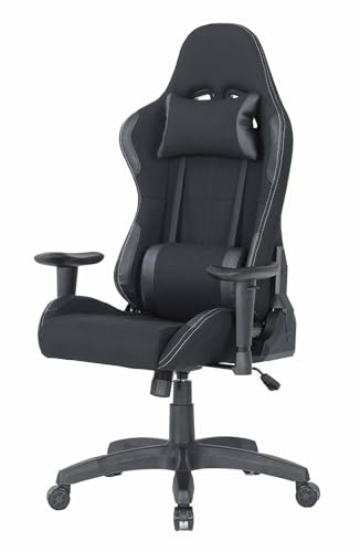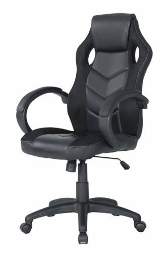 Dmora - Chaise à roulettes Bundaberg, Fauteuil de Jeu Adulte, Chaise de Bureau, 57x72h124/134 cm, Noir
