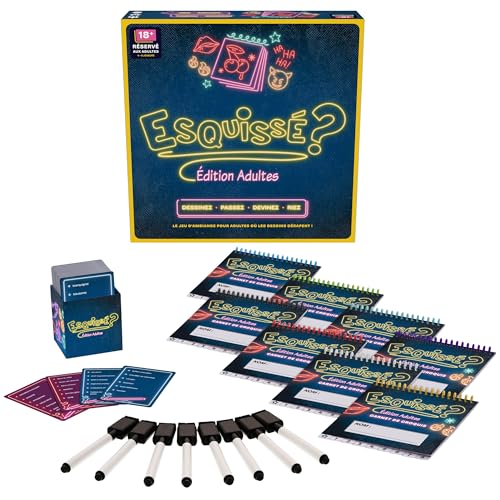 Goliath - ESQUISSÉ ? ÉDITION Adultes – Jeu d’Ambiance Adulte- Party Game Dessins & Devinettes - en Français - 100 Cartes, 8 carnets effaçables, Feutres & Chiffons- 4–8 Joueurs - 30 Min - 18+ Ans