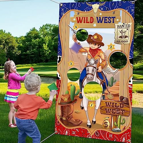 Jeu de lancer de cow-boy, toile de fond de cowboy Wild West avec lot de 3 poufs pour enfants et adultes, jeu de lancer de cowboy pour décorations de fête occidentales, jeux d'extérieur et d'intérieur,