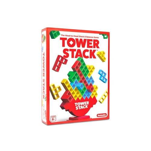 Tower Stack de Relatable - Jeu d'équilibre et d'empilage passionnant pour Enfants et Adultes, Jeu Familial avec 44 Cartes, 32 Blocs, Tour, Pied et Instructions (français Non Garanti)