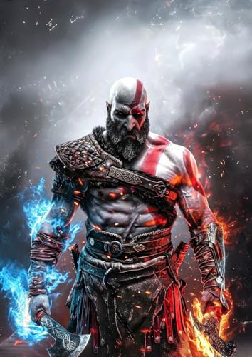 Frenchiart Poster Métallique Kratos – God of War – Jeu Vidéo Action – 30 x 42 cm – Avec Aimant Mural