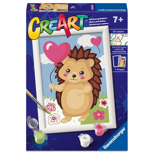 Ravensburger - CreArt Série E : Hérisson aimant, Peindre avec des chiffres, Kit de peinture pour enfants, cadre inclus, jeu éducatif et créatif, idée cadeau enfants 7 ans, 13 x 18 cm