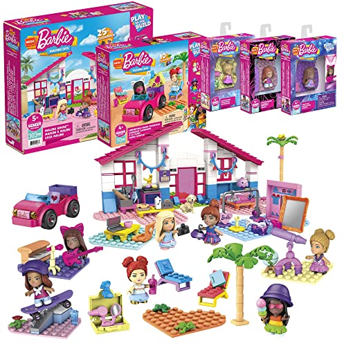 Mega Construx Barbie Pack de 5 Coffrets à Construire avec 7 Mini-Figurines, Jeu de Briques de Construction, 440 pièces, pour Enfant dès 5 Ans, HBF32