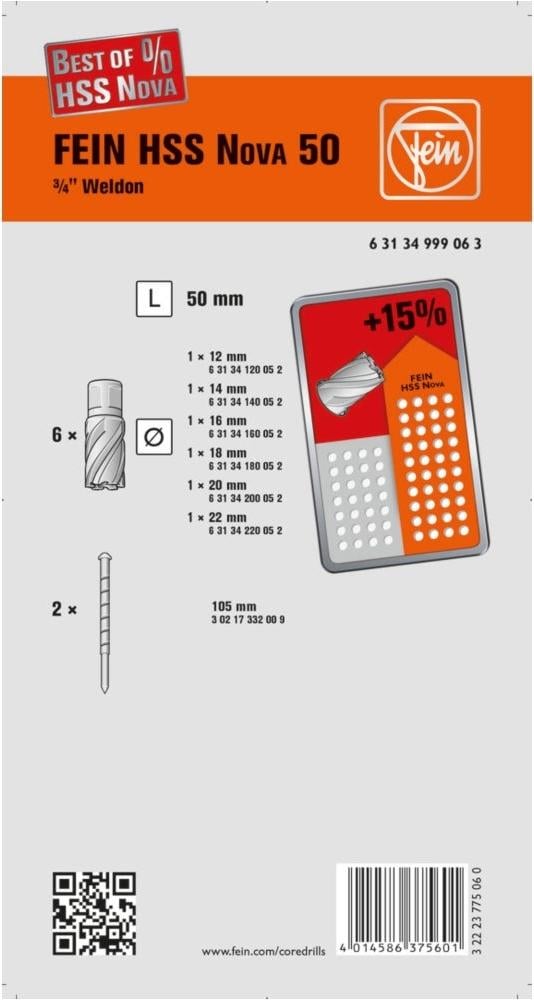 Jeu de carottage Best Of 8 pces. D.12-22mm HSS T.de coupe 50mm QuickIN FEIN