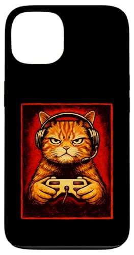 Chat Gamer Graphique Amusant Animal de Jeu Grincheux Chat Orange Coque pour iPhone 13