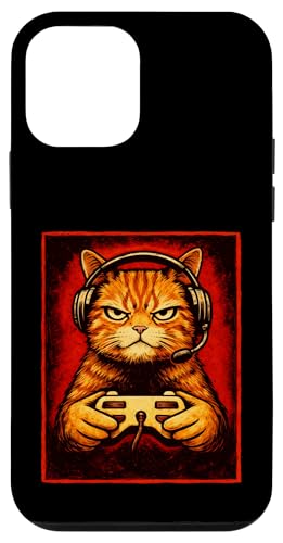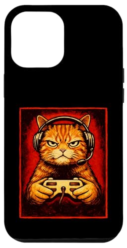 Chat Gamer Graphique Amusant Animal de Jeu Grincheux Chat Orange Coque pour iPhone 12 Pro Max
