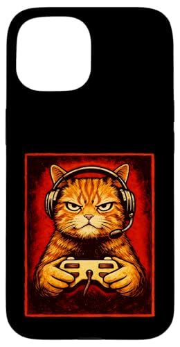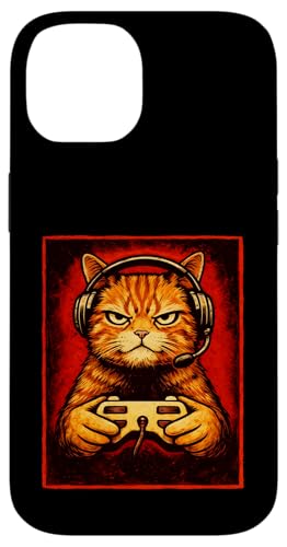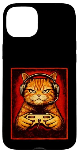 Chat Gamer Graphique Amusant Animal de Jeu Grincheux Chat Orange Coque pour iPhone 15