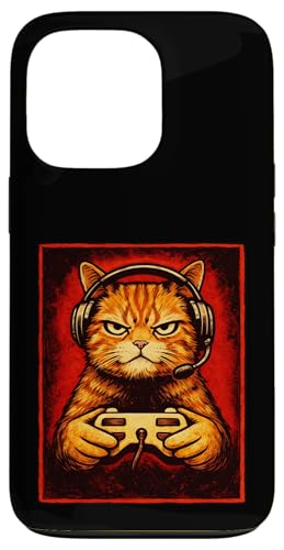 Chat Gamer Graphique Amusant Animal de Jeu Grincheux Chat Orange Coque pour iPhone 13 Pro