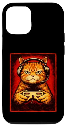 Chat Gamer Graphique Amusant Animal de Jeu Grincheux Chat Orange Coque pour iPhone 12/12 Pro