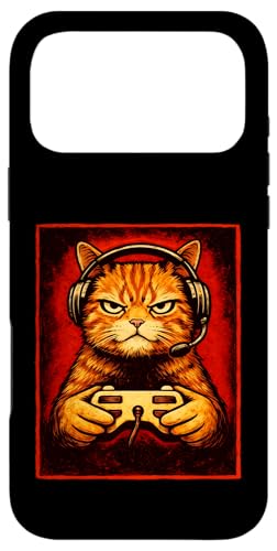 Chat Gamer Graphique Amusant Animal de Jeu Grincheux Chat Orange Coque pour iPhone 17 Pro
