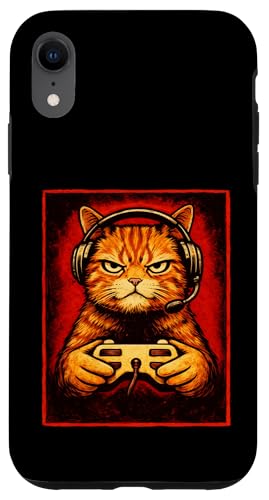 Chat Gamer Graphique Amusant Animal de Jeu Grincheux Chat Orange Coque pour iPhone XR