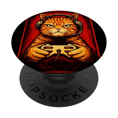Chat Gamer Graphique Amusant Animal de Jeu Grincheux Chat Orange PopSockets PopWallet pour MagSafe