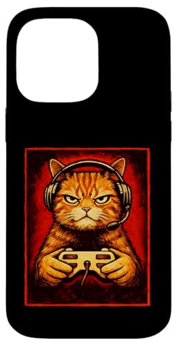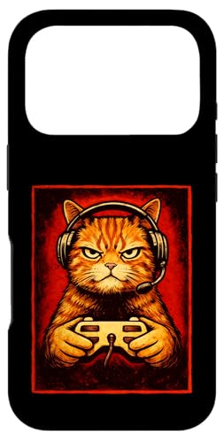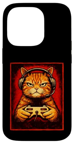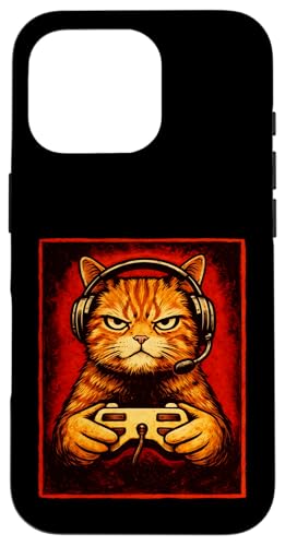 Chat Gamer Graphique Amusant Animal de Jeu Grincheux Chat Orange Coque pour iPhone 16 Pro
