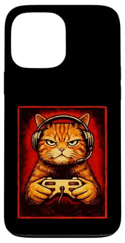 Chat Gamer Graphique Amusant Animal de Jeu Grincheux Chat Orange Coque pour iPhone 13 Pro Max