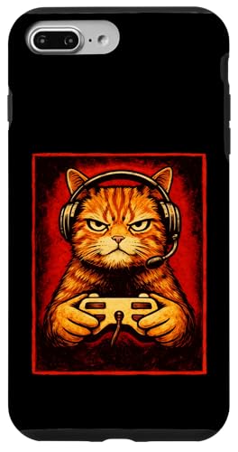 Chat Gamer Graphique Amusant Animal de Jeu Grincheux Chat Orange Coque pour iPhone 7 Plus/8 Plus