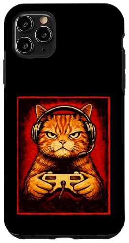 Chat Gamer Graphique Amusant Animal de Jeu Grincheux Chat Orange Coque pour iPhone 11 Pro Max