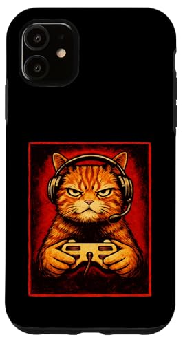Chat Gamer Graphique Amusant Animal de Jeu Grincheux Chat Orange Coque pour iPhone 11