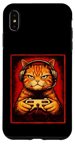 Chat Gamer Graphique Amusant Animal de Jeu Grincheux Chat Orange Coque pour iPhone XS Max
